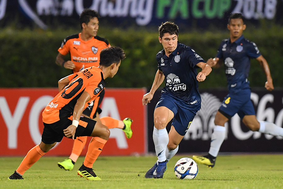 เริ่มเกมครึ่งแรก เข้าสู่นาทีที่ 21 เชียงราย ยูไนเต็ด มาได้เตะมุมทางขวา ศิวกรณ์ เตียตระกูล เปิดบอลเข้ามาในเขตโทษ บรินเนอร์ เฮนริเก ได้ตั้งหัวโขกบอลเข้าประตูไป เชียงราย ยูไนเต็ด ขึ้นนำ 1-0